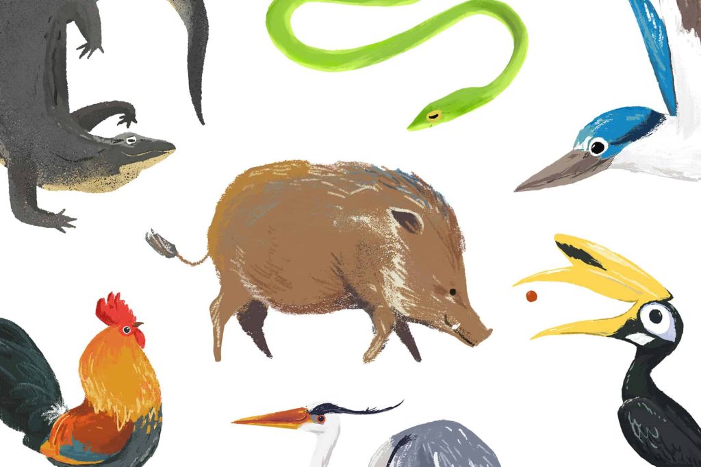 Collaborating with Asian Detours, specialists in crafting outdoor adventure experiences, I created a series of characters inspired by the unique biodiversity of Pulau Ubin. These characters celebrate the island’s remarkable wildlife, featuring species endemic to its lush landscapes and rich ecosystems.